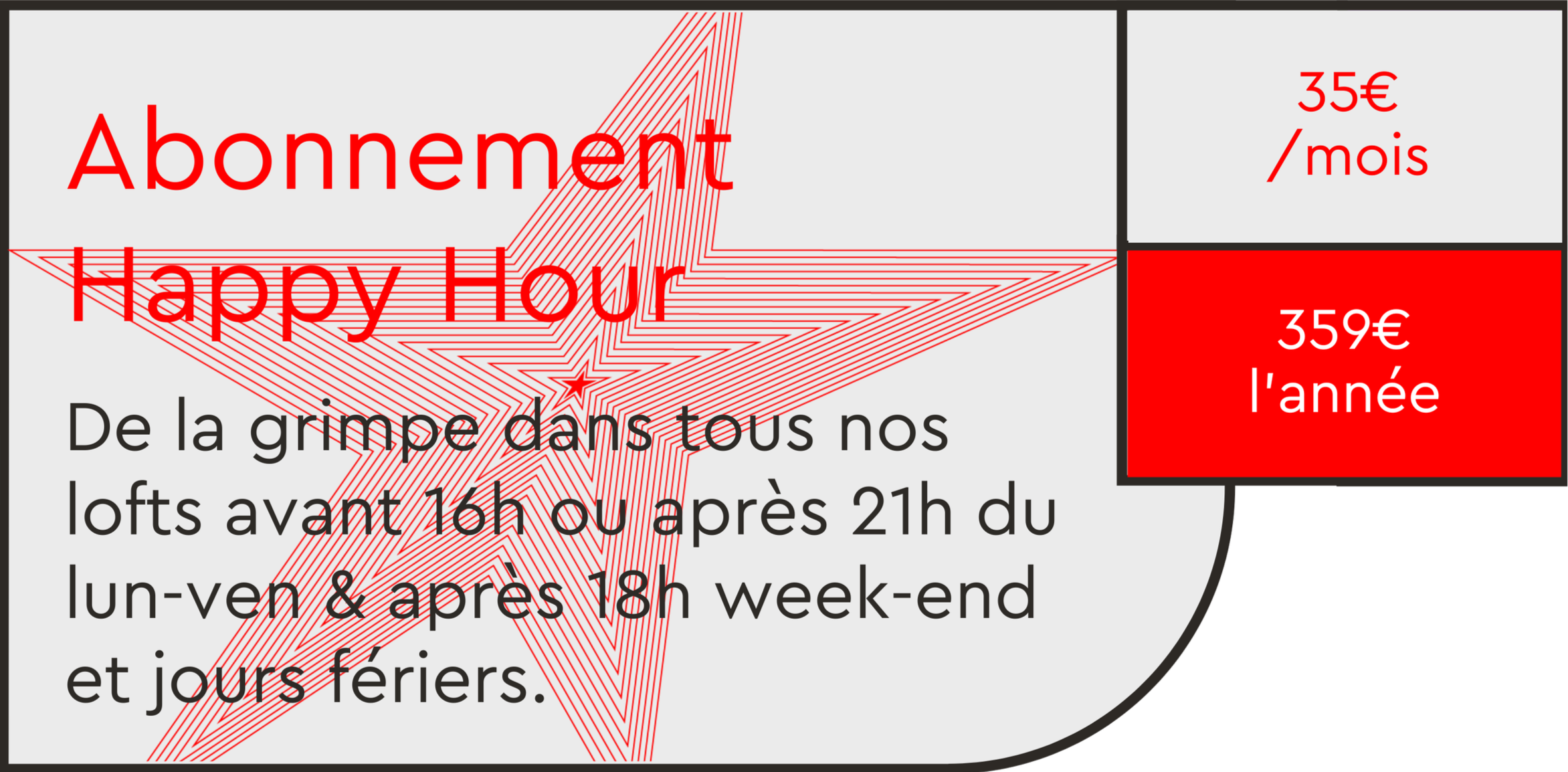 Happy Hour** : avant 16h et après 21h Lun. au Vendr. et après 18h le week-end et jours fériés.